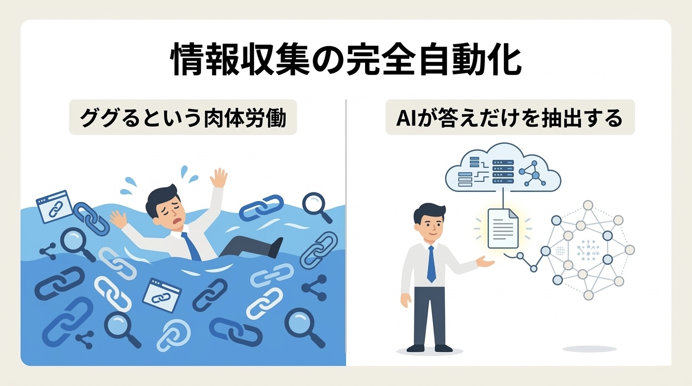 「ググる(検索エンジンでリンクを巡回する)」という行為は、現代のビジネスにおいて最も生産性の低い「情報の肉体労働」です。