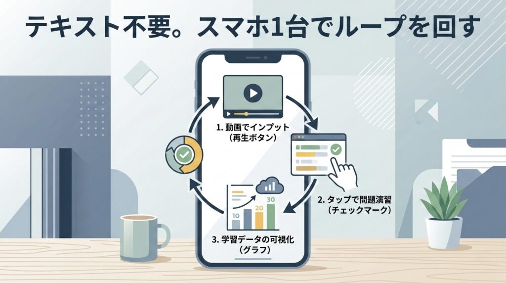 消しゴムのカスも出ず、ページをめくる時間もゼロ。この「システムによる学習管理」にお金を払うのが、大人の資格投資の基本です。