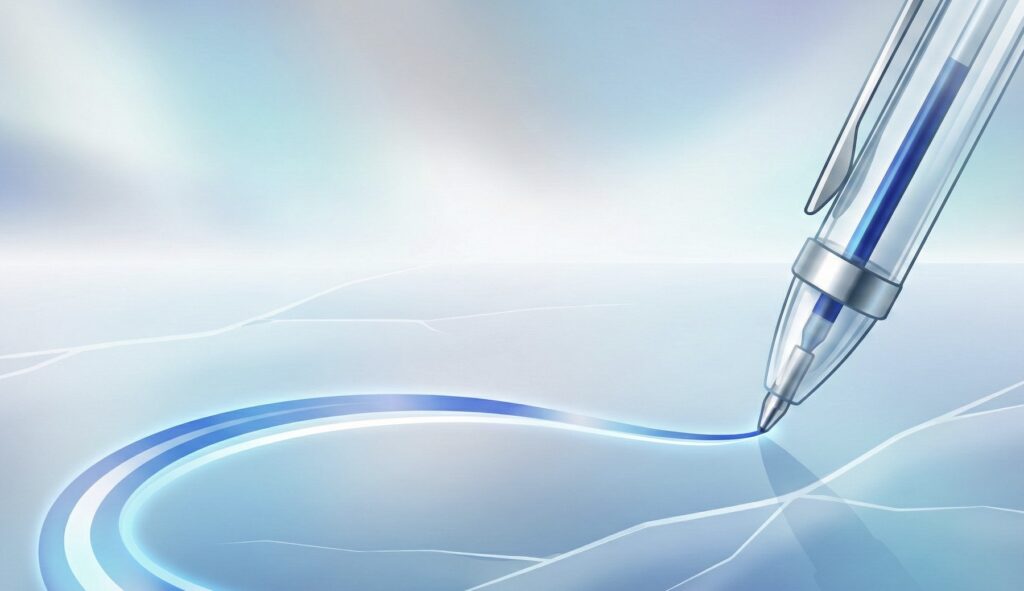 昔ながらの油性ボールペンは、インクがねっとりしていて、書く時に少し力を入れる必要がありました。 しかし、ジェットストリームは違います。 まるで氷の上を滑るかのように、ペン先が紙の上をスルスルと走ります。