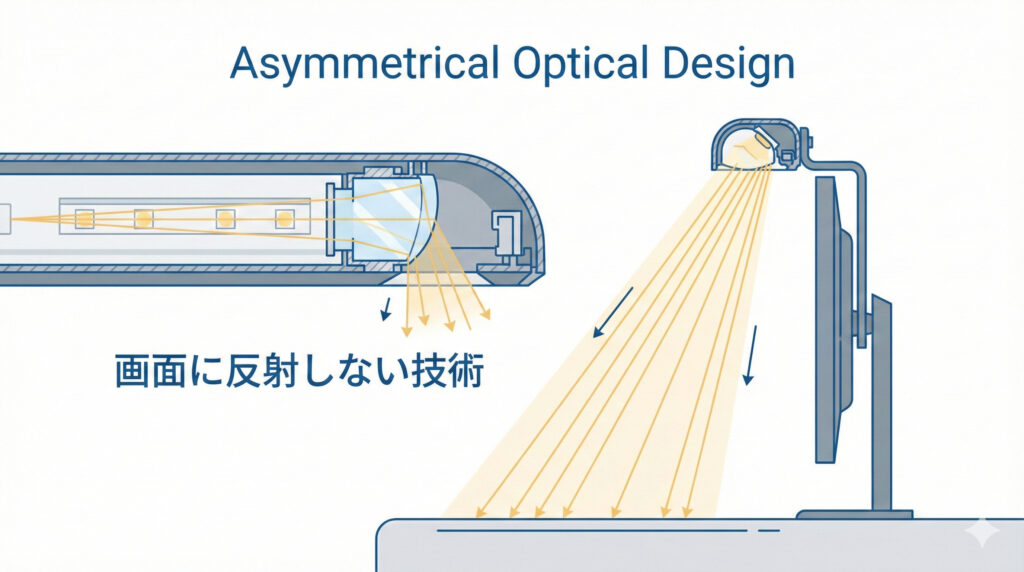 メリット②:画面に光を当てない「非対称配光」