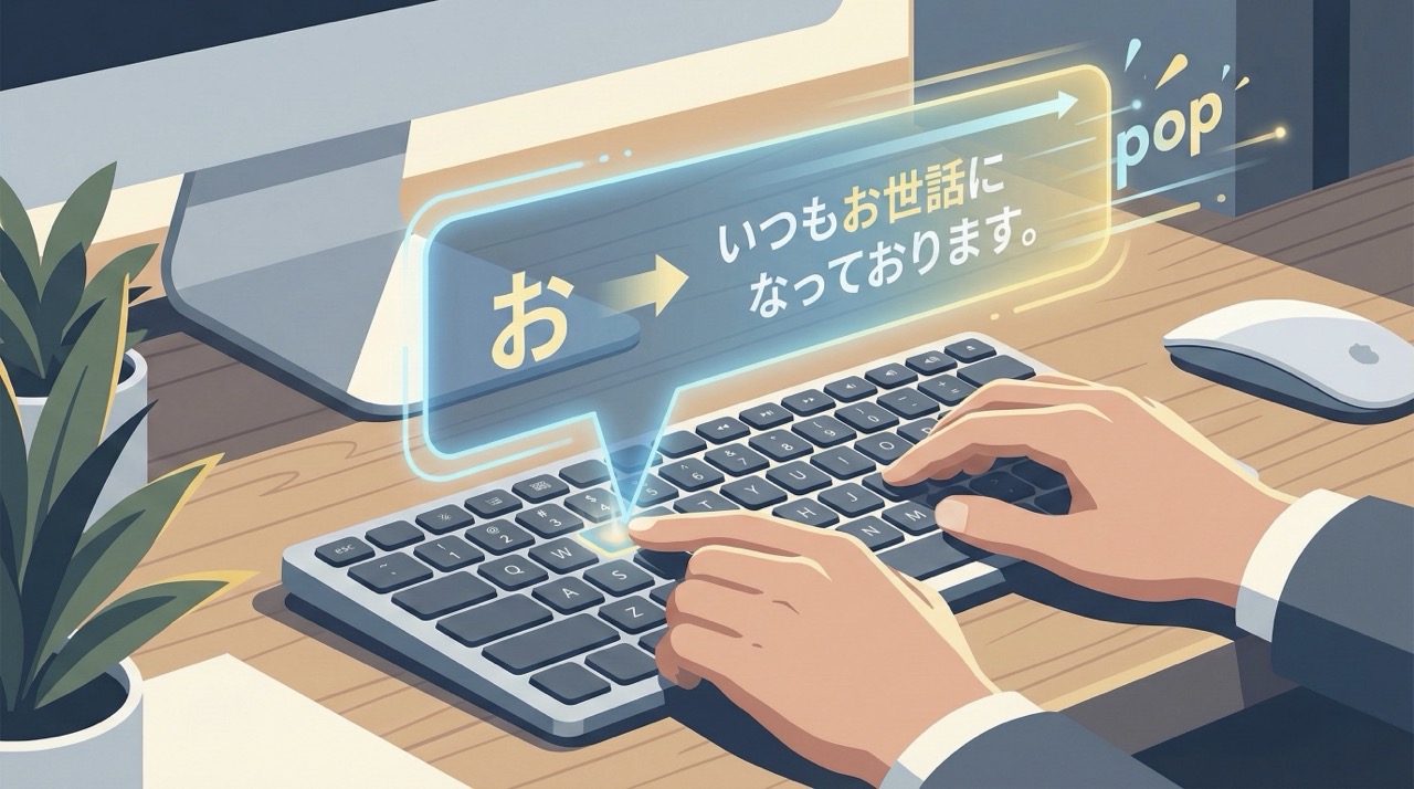 一度正しく登録してしまえば、あとは呼び出すだけ。 人間が入力しないので、ミスのしようがありません。 「絶対に間違えられない社名」や「役職」こそ、辞書登録すべきです。