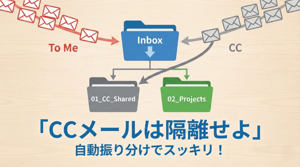 - 「CC」メールは、自動で別フォルダに隔離せよ。