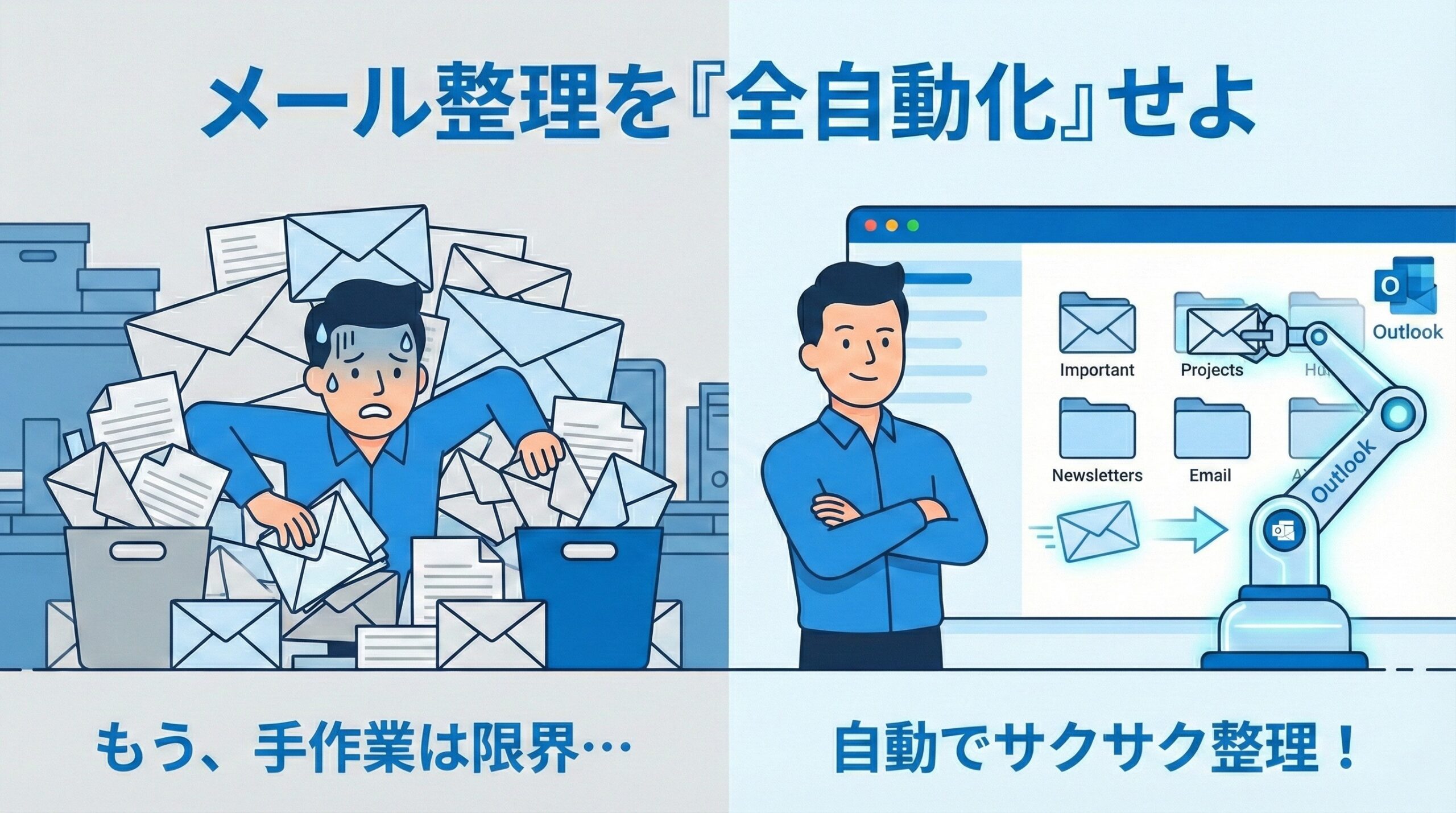 はっきり言います。 メールの仕分けは、人間がやる仕事ではありません。ロボット(Outlook)にやらせる仕事です。