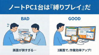「いちいちウィンドウを切り替えるのが面倒くさい」 「Excelを見ながら、PowerPointを作りたいけど、画面が狭すぎる」 「Web会議中、資料を画面共有すると、参加者の顔が見えなくなる」もしあなたが、会社から支給された13インチや15...