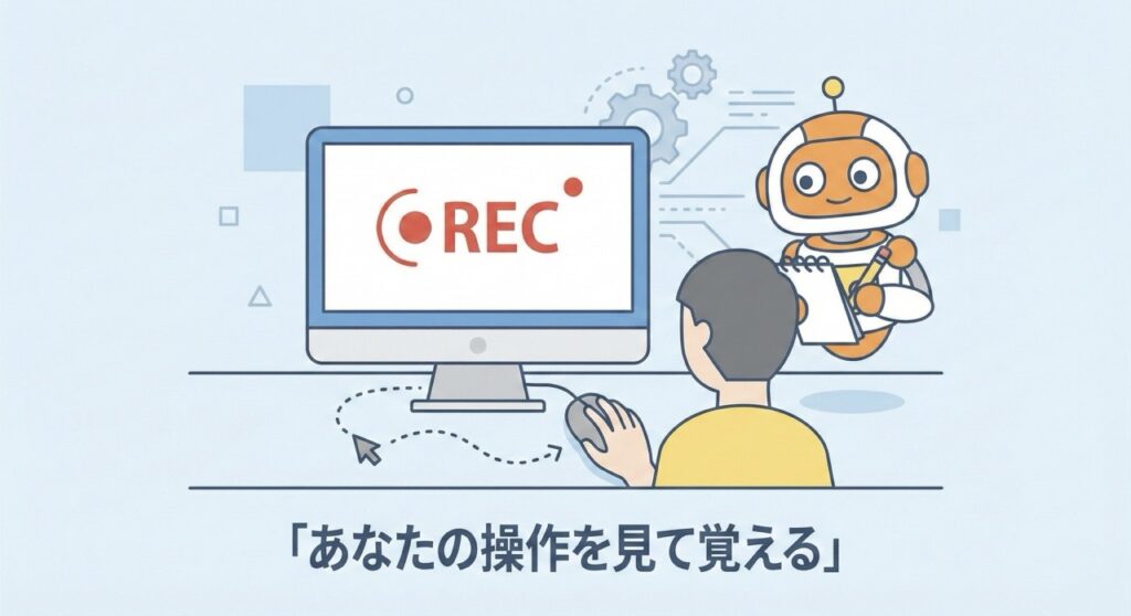 さらに、初心者には「レコーダー機能」があります。 録画ボタンを押してから、いつもの作業(クリックや入力)を一通りやってみてください。 すると、PADがあなたの操作を自動的に記録し、フローに変換してくれます。 まさに「背中を見て覚えさせる」感覚です。