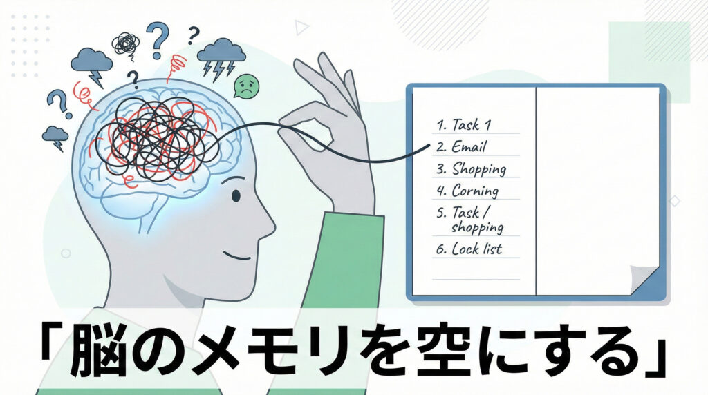 「こんな些細なことまで?」と思うことまで書くのがコツです。 文字にして可視化した瞬間、脳は「あ、これは外部メモリ(ノート)に保存したから、もう忘れていいんだ」と認識します。 これだけで、脳のCPU使用率が80%から20%に下がります。