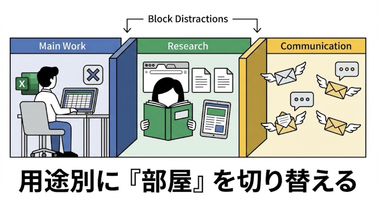 2. 作業ごとに仮想デスクトップ(部屋)を分け、コンテキスト・スイッチを防げ。