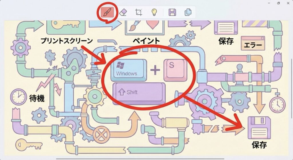 「とりあえず保存」してしまうため、デスクトップに「capture01.png」「名称未設定.jpg」といった一時的なファイルが無限に増えていきます。 これらを後で削除するのも、立派な無駄な作業です。